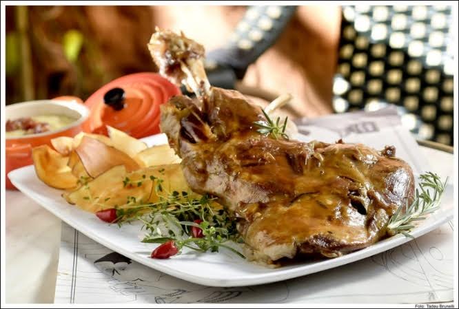 caramelado, acompanhamentos como pão de queijo caseiro, Nhoque de mandioquinha ao pomodoro, ragu de carne e chips de couve, Raviolli de espinafre ao molho de lagostim, Rocambole de ragu de frango com mix de castanhas e uva e Strudell de ratatouille de legumes.A mesa fria é composta por Antepastos (berinjela, sardela e creme de queijo quente), Carpaccio de abóbora, Carpaccio de pepino, Saladas e Tabule de grãos de quinua. As sobremesas também estão inclusas: Mousse de chocolate branco e preto com raspas e crocante, Torta de limão brulée com framboesas frescas, Pavê colorido, Arroz doce com doce de leite e Merengue de chocolate.