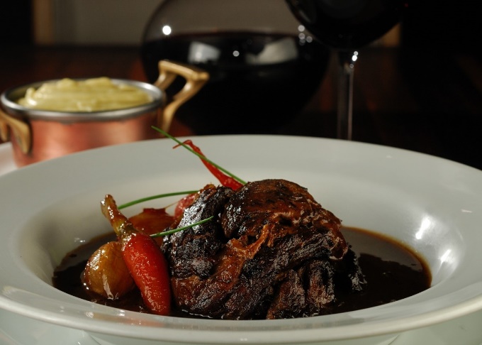 Ossobuco de Cordeiro Cozido lentamente ao vinho tinto com Polenta cremosa