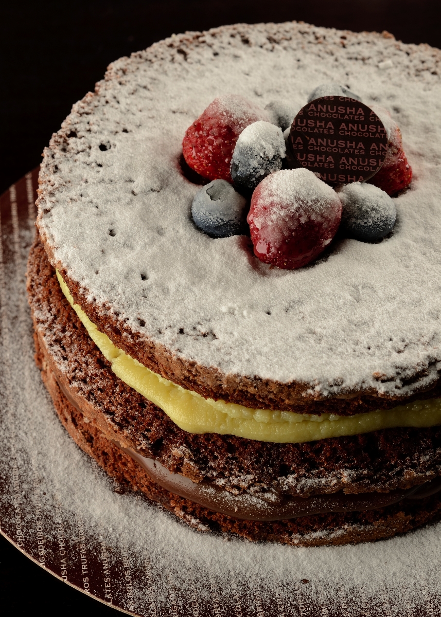Creme inglês ao marsala 10 anos, farofa de “cantuccini” e “ganache” de chocolate amazônic