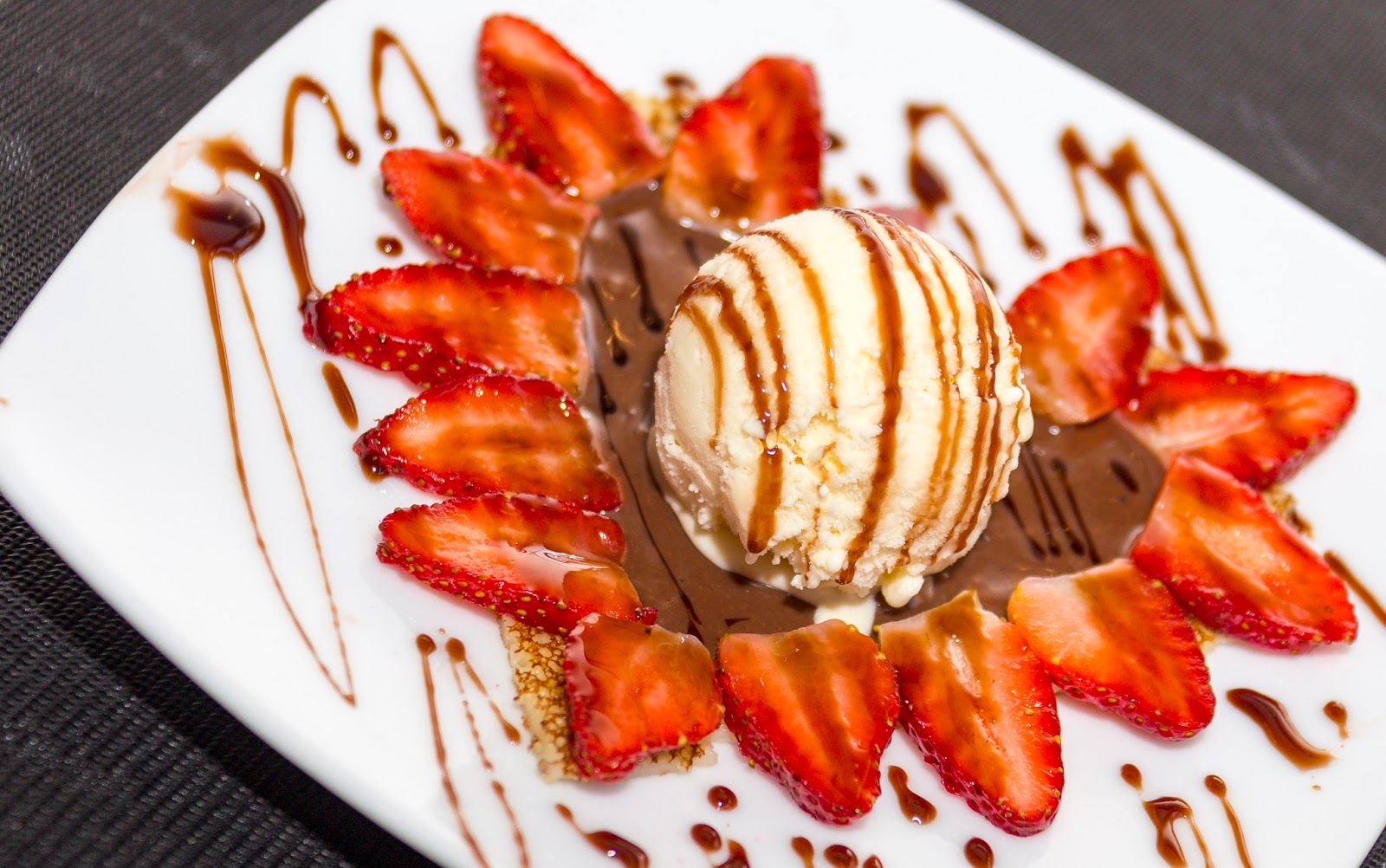 Cioccolato (Esfera de chocolate belga com mousse de chocolate com pimenta, crocante e calda quente de chocolate amargo com conhaque) OU