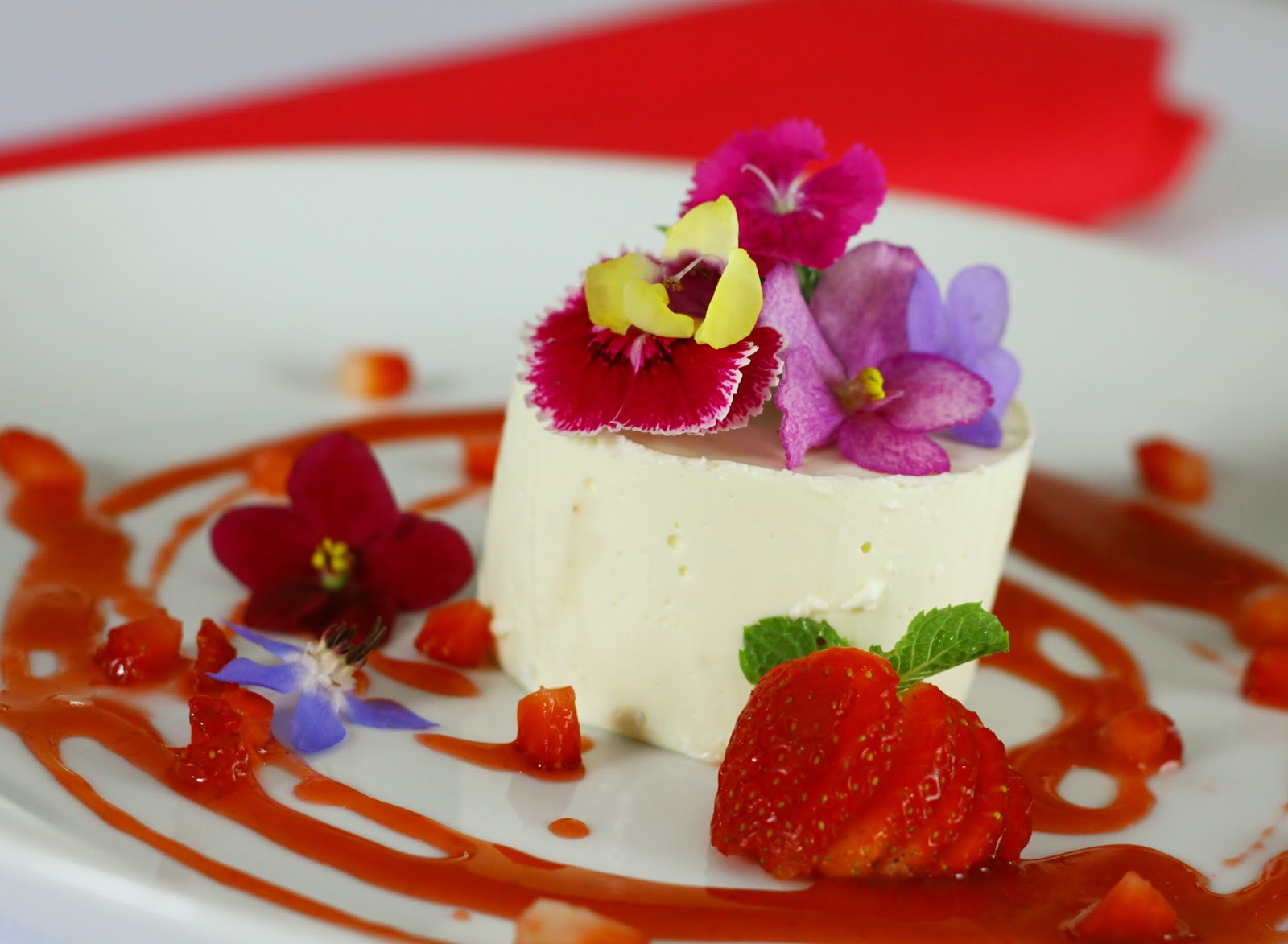 As sobremesas também estão inclusas: Mousse de manga, Torta de limão brulée com framboesas frescas (Foto), Pavê colorido, Arroz doce com doce de leite, Rabanadas, Mini sonhos de creme com raspas de limão, Pavê de nozes, Bolo mesclado, Mousse de chocolate branco e preta com raspas e crocante e Merengue de chocolate.