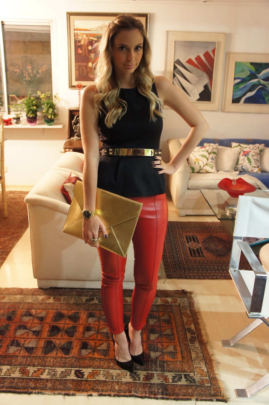 LOOK DO DIA – CALÇA DE COURO VERMELHA + PEPLUM