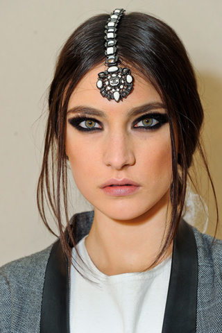 No post de ontem sobre o desfile Paris-Bombay da Chanel, esqueci de falar das grandes estrelas do desfile, o esmalte e a maquiagem, porque vamos concordar, as roupas e acessórios são incríveis, mas são para poucos e o que a grande maioria acaba comprando mesmo, é a linha de maquiagem e os famosos esmaltes desejo da marca. Começando pelo make, Peter Phillips, o responsável pelo setor de maquiagem da Chanel, contou que quis recriar o famoso olho preto amendoado feito com kajal pelas indianas, para isso, ele usou uma nova cor da sombra cremosa Illusion D’Ombre chamada Nirvana, junto com o lápis preto Le Crayon Khôl in Black e a máscara Inimitable Intense, também na cor preta. A pele perfeita foi finalizada com mais duas novidades, o pó compacto Route des Indes, que deve ser edição limitada, e o blush Joues de Contraste na cor Brume d’Or, nos lábios, como já contei para vocês, foi usado o batom Rouge Coco Shine, da coleção de verão, na cor Empreinte.