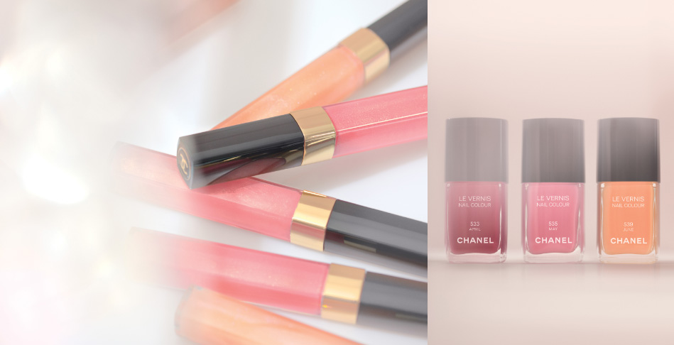 Depois de um inverno pesado, escuro e metálico, a Chanel apresenta um verão bem mais leve e delicado. A coleção Les Harmonies de Printemps foi inspirada na primavera e traz suaves tons de rosa e pêssego. Como sempre, a grande atração da coleção são os esmaltes, que dessa vez ganharam nomes dos meses que compõem a estação mais florida do ano. O April é um tom cereja, perfeito para a transição entre o inverno e a primavera, o May, um rosa bem clássico e o June um laranja com o pé no verão. A coleção deve chegar as lojas do hemisfério norte entre o fim de janeiro e o começo de fevereiro.