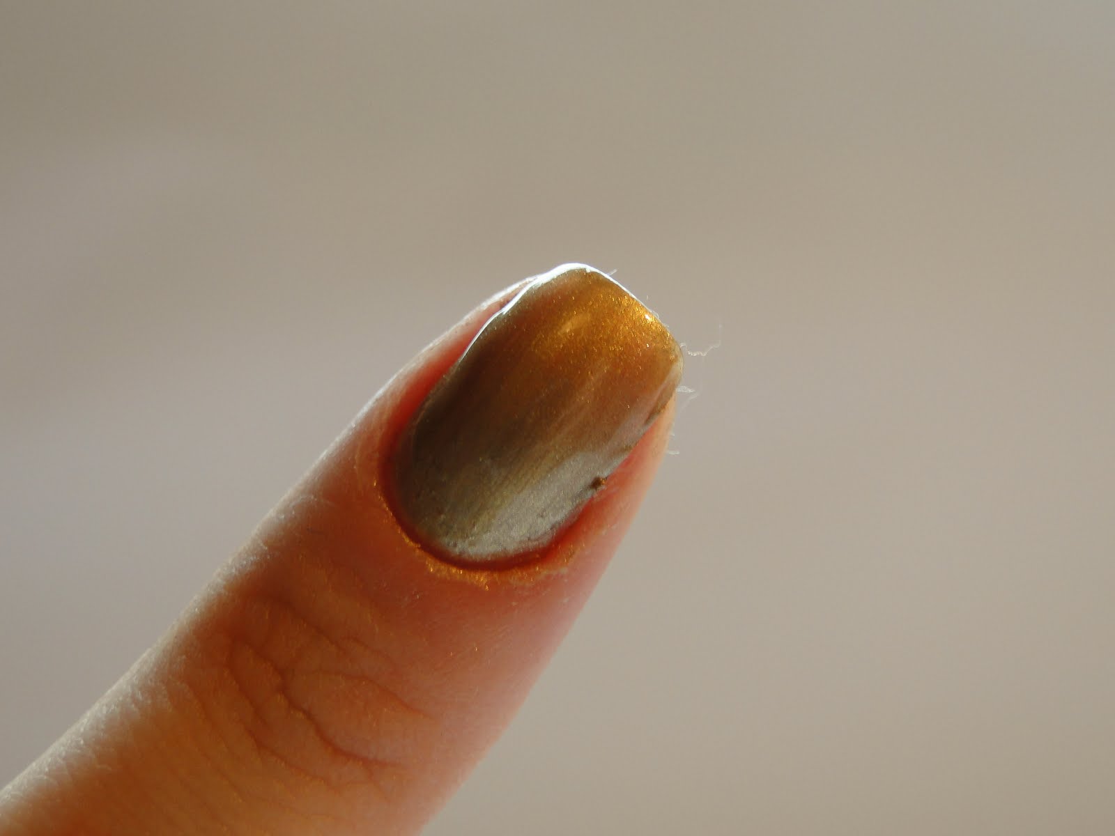 Primeiro é só fazer a unha normalmente e escolher a cor que você quer usar como base, a minha foi o esmalte Gold Digger da Sephora. O esmalte próprio para carimbo não deve ser aplicado diretamente nas unhas. (não reparem o serviço mal feito, foi só pra ilustrar!!)