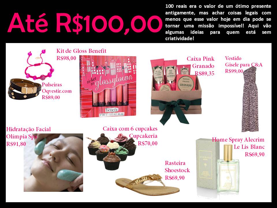 E as dicas de presente para esse natal continuam! Dessa vez o limite foi R$100, difícil, mas consegui, aqui vão as minhas sugestões, espero que vocês gostem!