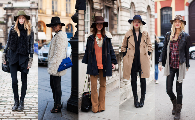 No último inverno europeu três modelos super fáceis de usar foram os mais vistos pelas ruas, o de aba curtinha estilo fedora, o de aba grande e flexível, estilo bem hippie, anos 70, conhecido em inglês como floppy e o fedora de aba mais longa, na minha opinião, o mais fácil de usar. Separei algumas fotos pra servir de inspiração pra sair por ai usando chapéu sem medo!!