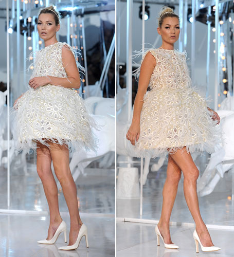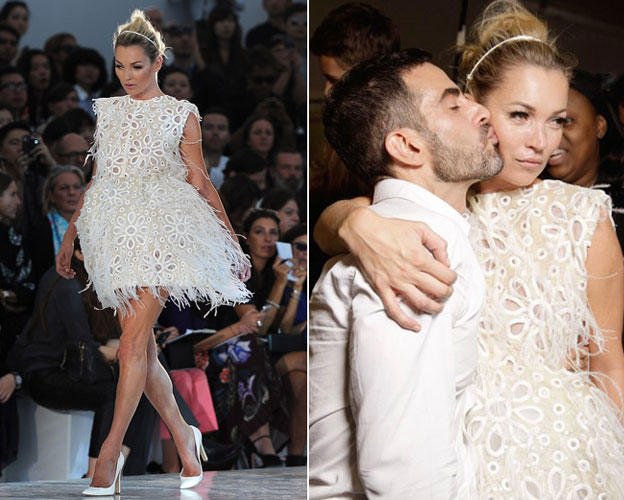 Para a surpresa de todos, Kate Moss, voltou as passarelas mais um vez para encerrar o desfile da Louis Vuitton, mas o que mais surpreendeu mesmo, foi a cara de mau humor que a modelo estava ao desfilar. Kate pare ter esquecido o profissionalismo de lado e cruzou, correndo, a passarela com uma cara de emburrada que teve até direito a bico e olhar cabisbaixo. E olha, que nem na frente na Marc Jacobs a modelo disfarçou a cara de quem não queria estar ali, o bico não saiu da boca de Kate nem com o beijo que ela ganhou do estilista! Segundo a Vogue o motivo do mau humor era sono, já na noite anterior a modelo festejou o lançamento de sua linha jóias como só ela sabe fazer, até altas horas da manhã, sendo que o desfile da grife começava pontualmente as 10 da manhã. O resultado?? Uma bela ressaca e uma noite mal dormida (ou sem sono algum), o suficiente para o mau humor de qualquer um.