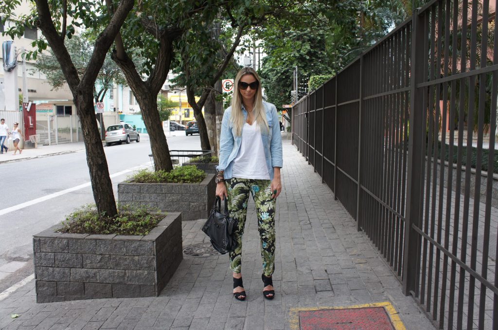 LOOK DO DIA – CALÇA ESTAMPADA + CAMISA JEANS