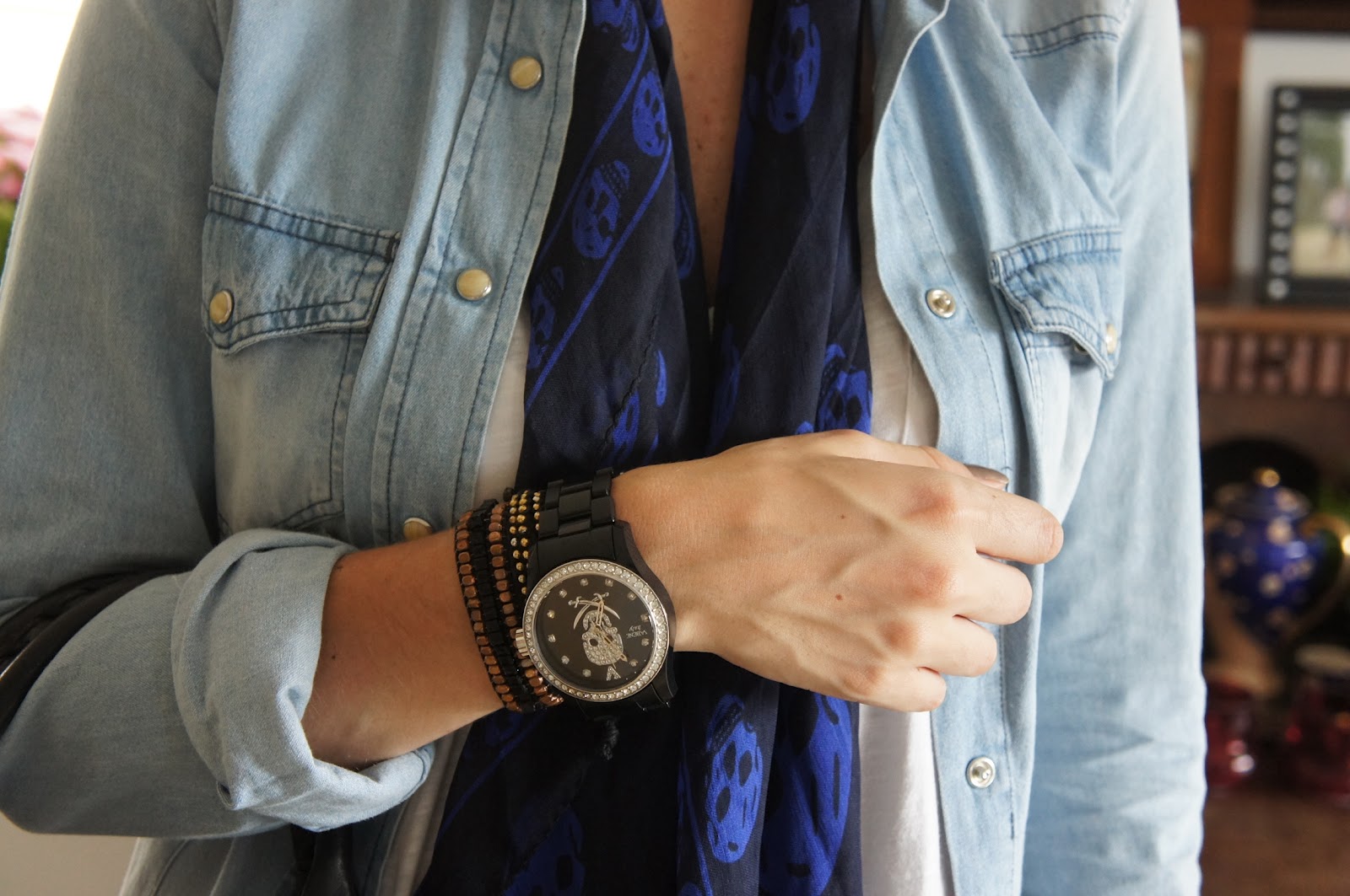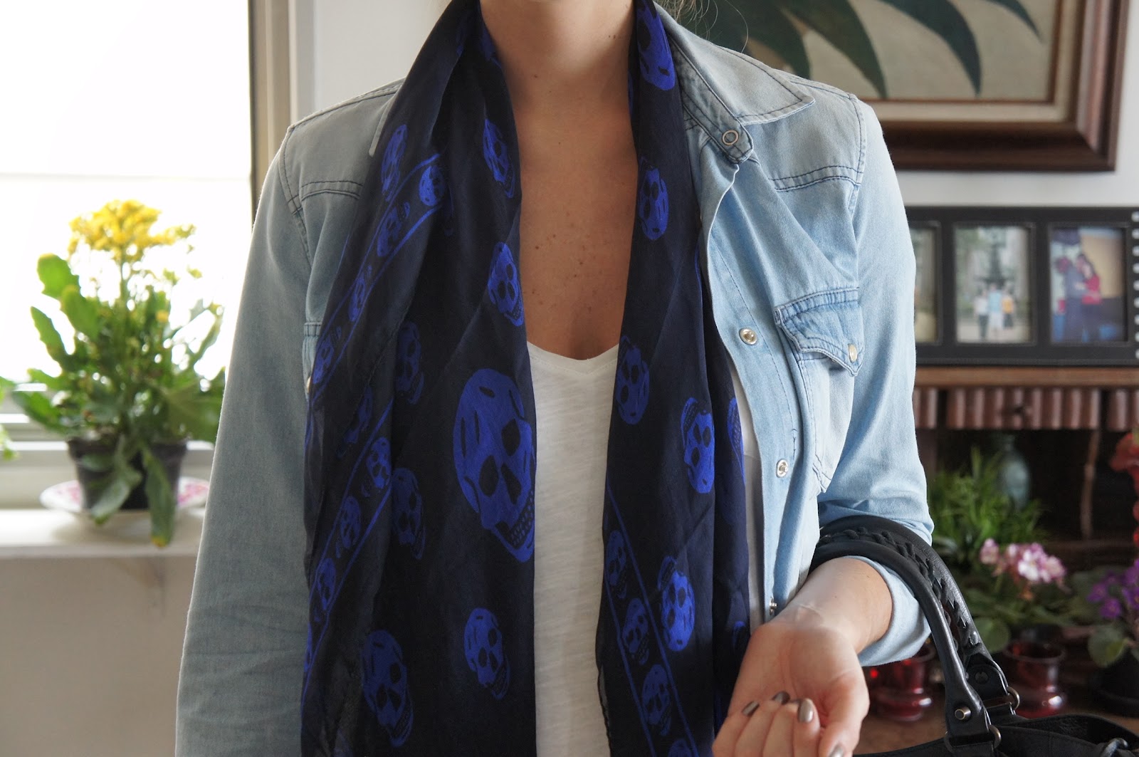 Usei o look de hoje para ir para a faculdade, o calor insuportável deu uma trégua e como as 7 da manhã o vento tava friozinho, deu para usar calça e até uma camisa mais quentinha. Escolhi a legging de couro sintético para usar com uma camiseta branca básica, aproveitei para tirar o meu sneaker da Isabel Marant do armário e para dar uma graça no look calça e camiseta joguei o lenço de caveira por cima. A camisa jeans não fazia parte do look a princípio, mas graças ao vento achei melhor pega-la antes de sair. E aí, o que vocês acharam??