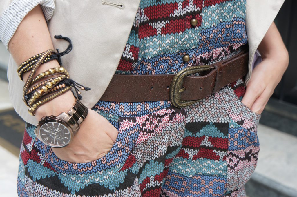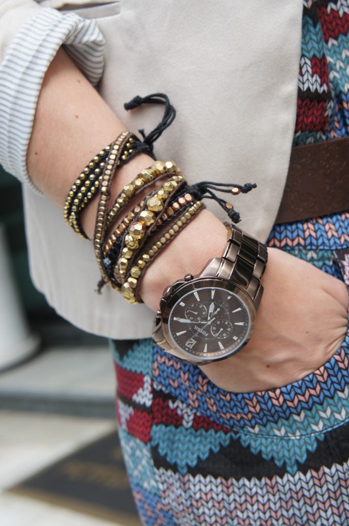 Ando amando macaquinhos, acho a peça super versátil e confortável (isso é, menos na hora de ir ao banheiro), ideal para o calor que está fazendo, sozinho ele fica ótimo em um look bem descontraído e para deixar ele um pouquinho mais formal basta combina-lo com um blazer. Foi justamente isso que eu fiz nessa produção, escolhi esse macaquinho com estampa estilo navajo e como não me sinto a vontade usando apenas ele aqui em São Paulo (me sinto muito nua), combinei com o blazer bege. A estampa é bem colorida, mas mesmo assim optei por usar acessórios coloridos, o único cuidado foi usar cores semelhantes as da estampa para o look ficar harmonioso. E aí, o que vocês acharam??