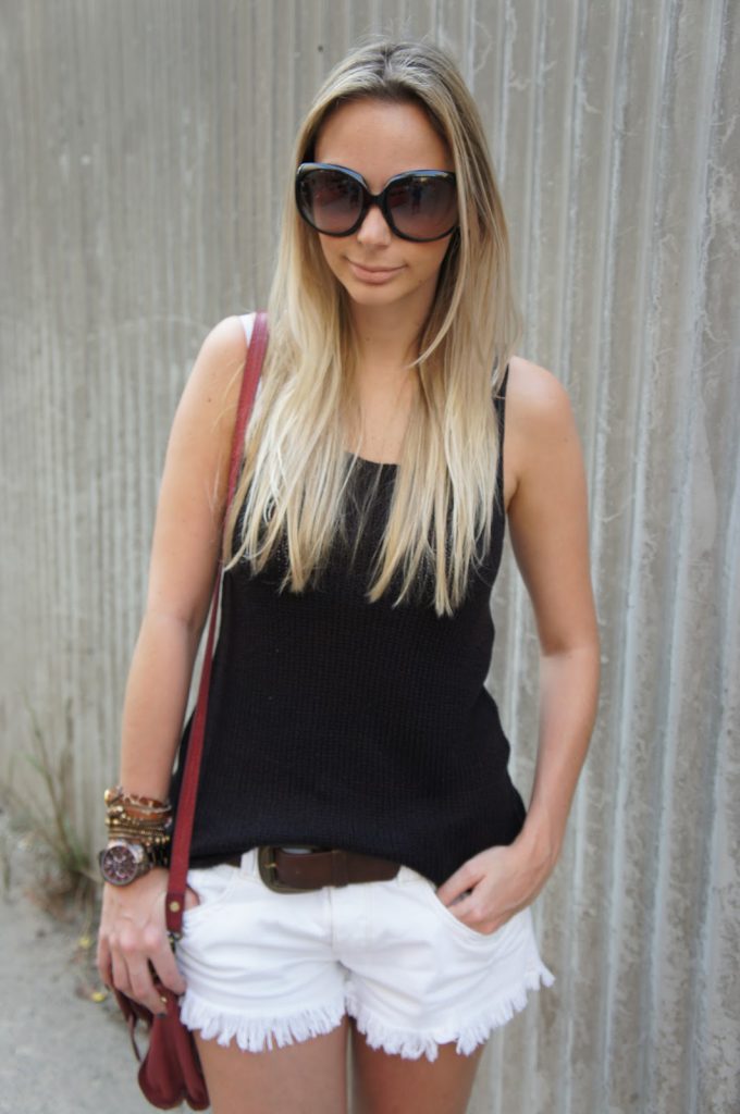 Depois de uma brechinha o calor voltou com tudo, então tenho um look verão, bem fresquinho para vocês hoje: shorts jeans, regata de tricô e nada mais! Nos pés, a botinha com glitter da Schutz para dar um charme e apenas algumas pulseiras, afinal quando ta aquele mega calor quanto menos coisa melhor, não!?