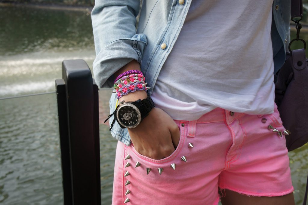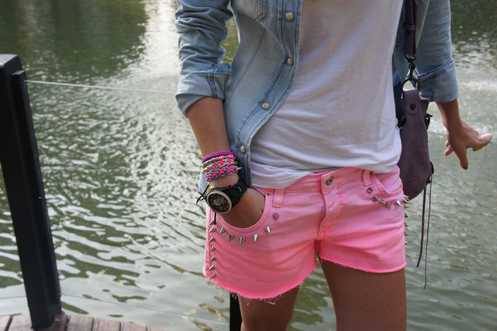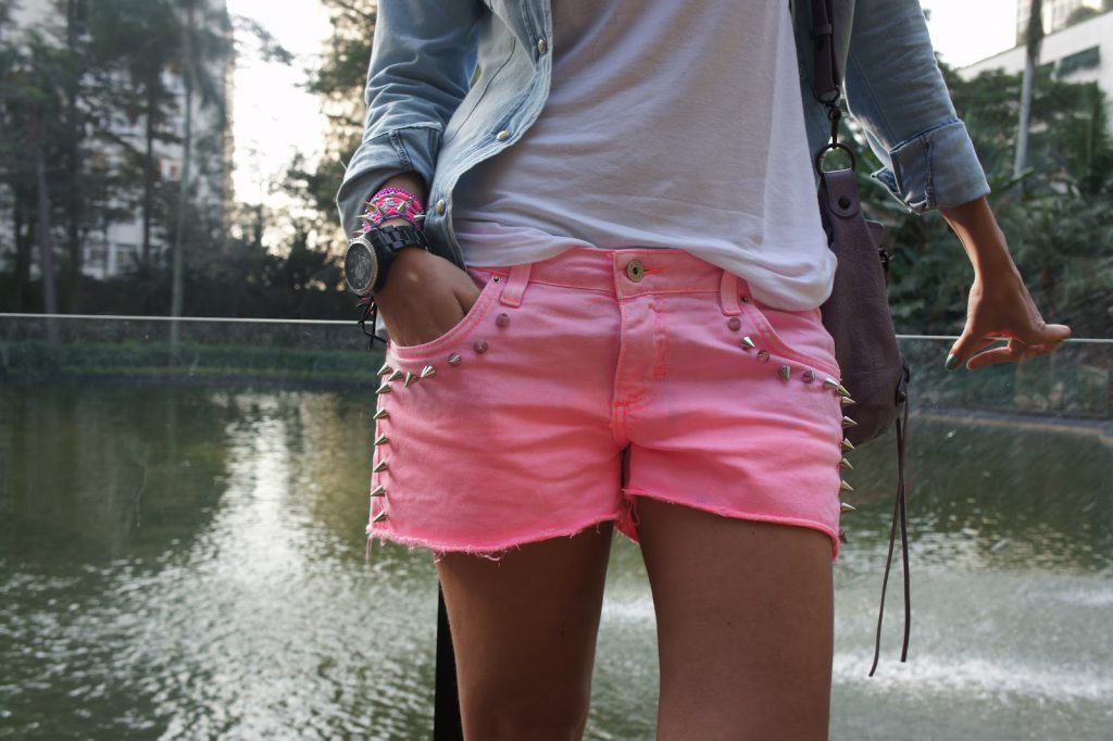 Bom gente, o look de hoje á super especial, por favor deem um desconto pra cara de sono e o cabelo bagunçado, mas precisava mostrar para vocês essa novidade da minha marca, a Chez Bijoux, o shorts tie dye com spikes!! Usei em um momento super descontraído, só pra estrear mesmo, fui almoçar com no clube e combinei apenas com uma camiseta branca, camisa jeans, pois estava friozinho e o kit de pulseiras também da Chez Bijoux!! Quem gostou pode encontrar o shorts aqui!! Ele é lindo demais gente, super vale a pena!!! E aguardem porque em breve tem mais modelos saindo do forno que eu mostro aqui para vocês em primeira mão!!!