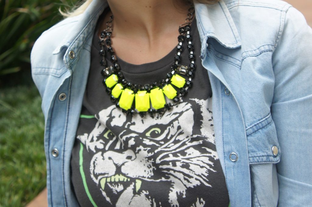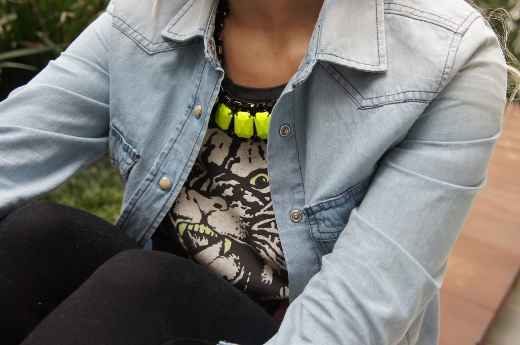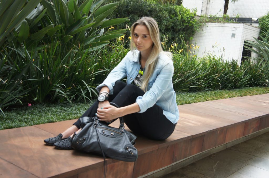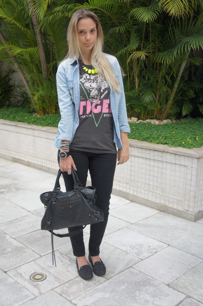 E aí, gente? Como foram de feriado?? O meu foi bem tranquilo, sexta tive um churrasco para ir e hoje vou mostrar para vocês o look que eu usei. Como queria algo bem básico optei por uma tshirt com estampa com toques neon, jeans preto e camisa jeans. Como acessórios escolhi o colar, também neon, da Chez Bijoux, relógio e uma pulseira só. Nos pés, um dos meus sapatos mais confortáveis e lindos, o slipper Adena do Sam Eldeman.