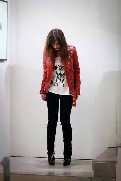 Que o vermelho é a cor do inverno todos já sabem, as calças já viraram moda e estão por todas as partes. Mas ultimamente o vermelho tem chamado a minha atenção é em jaquetas de couro no modelo perfecto. Ela começou a fazer sucesso após um modelo cheio de alfinetes aparecer nas passarelas da Balmain, depois disso imediatamente as blogueiras extrangeiras e celebridades como Nicole Richie já começaram a desfilar com as suas pelas ruas. Ela é ótima para dar cor nos looks de inverno, bem fácil de combinar com peças básicas ou animal print, também é a peça ideal para conseguir aquele look mais rock and roll, combinada com mais couro ou com acessórios mais pesados. O lookbook da Zara que eu mostrei ontem tem um modelo lindo, que por sinal é o mesmo usado por algumas das blogueiras, ele deve chegar por aqui em alguns meses.Por aqui ainda não sei onde tem, quem souber da a dica!!!