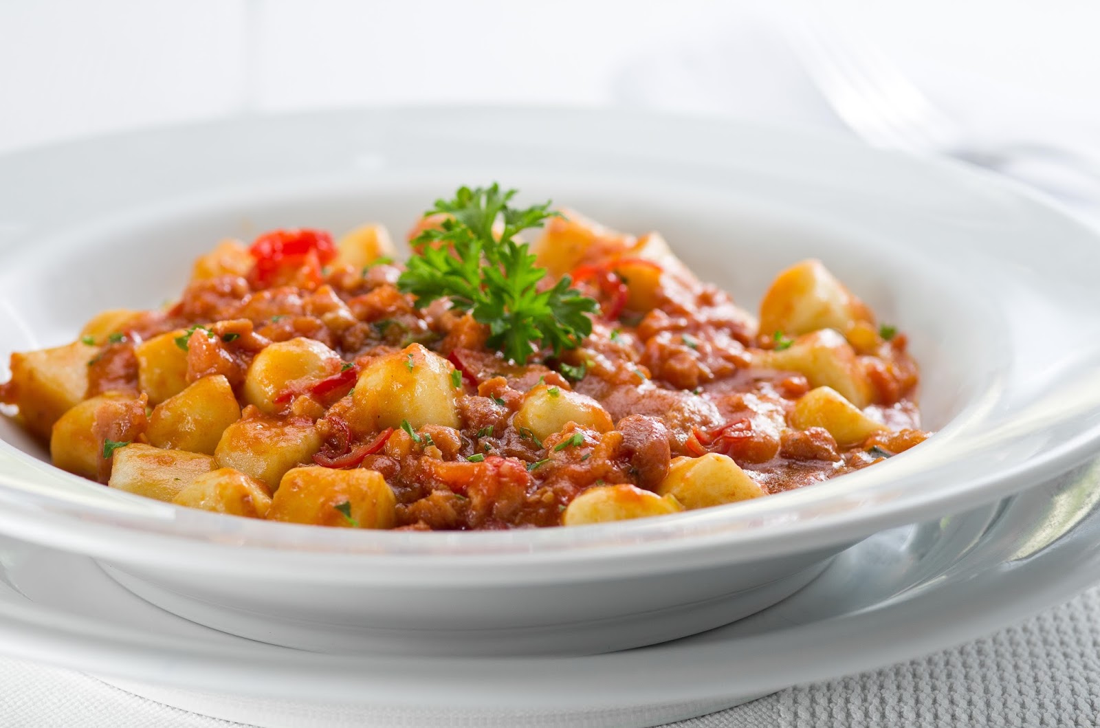 Gnocchi diavolo: massa de batata com ragú de calabresa e peperoncino – R$ 44