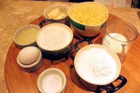 Modo de preparo: Ferva o leite com a manteiga e despeje sobre o polvilho. Misture bem e espere amornar. Acrescente o ovo e mexa com as mão até obter uma massa homogênea. Junte o queijo ralado e misture bem.