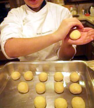 Unte a mão com o óleo e faça bolinhas do tamanho desejado, eu fiz em um tamanho médio. Deixe descansar por 30 minutos antes de levar ao forno. Após o descanso asse em forno pré aquecido a 180ºC, até dourar.