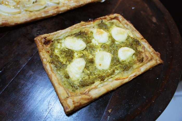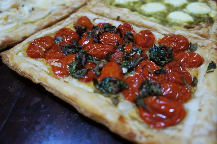 Hoje tem mais uma daquelas receitas perfeitas pra receber alguns convidados em casa, é fácil de fazer, da pra deixar tudo pré-preparado e só levar pro forno na hora de servir! Já mostrei pra vocês aqui as minhas receitas de bruschettas e essas tartines são uma ótima opção pra quem já enjou delas, rs. Na verdade, as duas são bem parecidas, mas em vez de ter pão como base, a da tartine é formada por uma massa de torta bem fininha, nesse dia usei massa folhada comprada pronta, mas você pode usar a que tiver em casa.