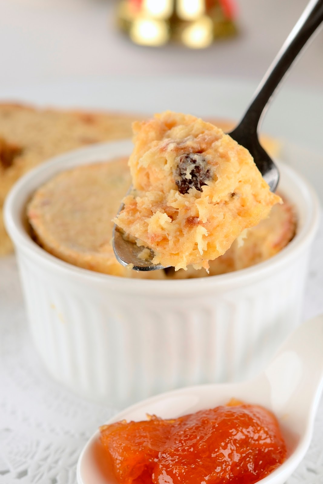 Em recipiente individual untado com manteiga e açúcar complete até menos da metade com a
