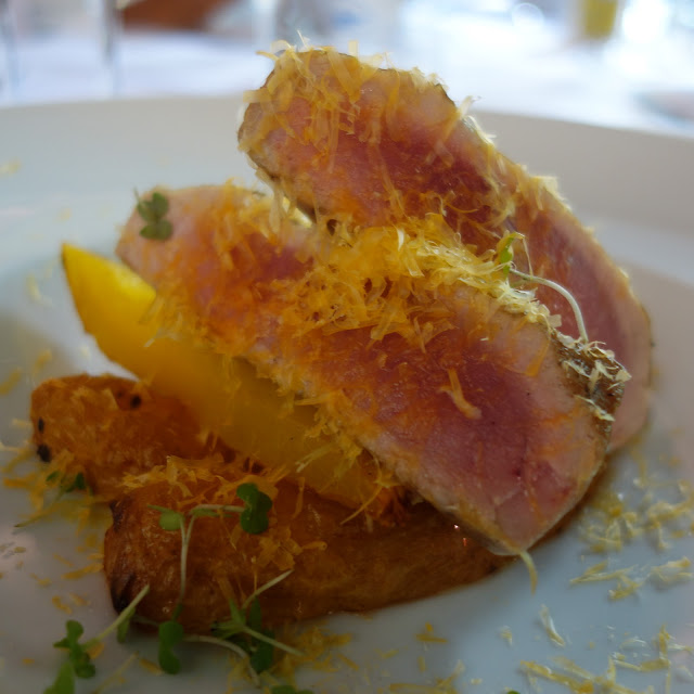 A outra opção era o Peixe do dia, Mimolette, Madioquinha e Broto de Ervilha.