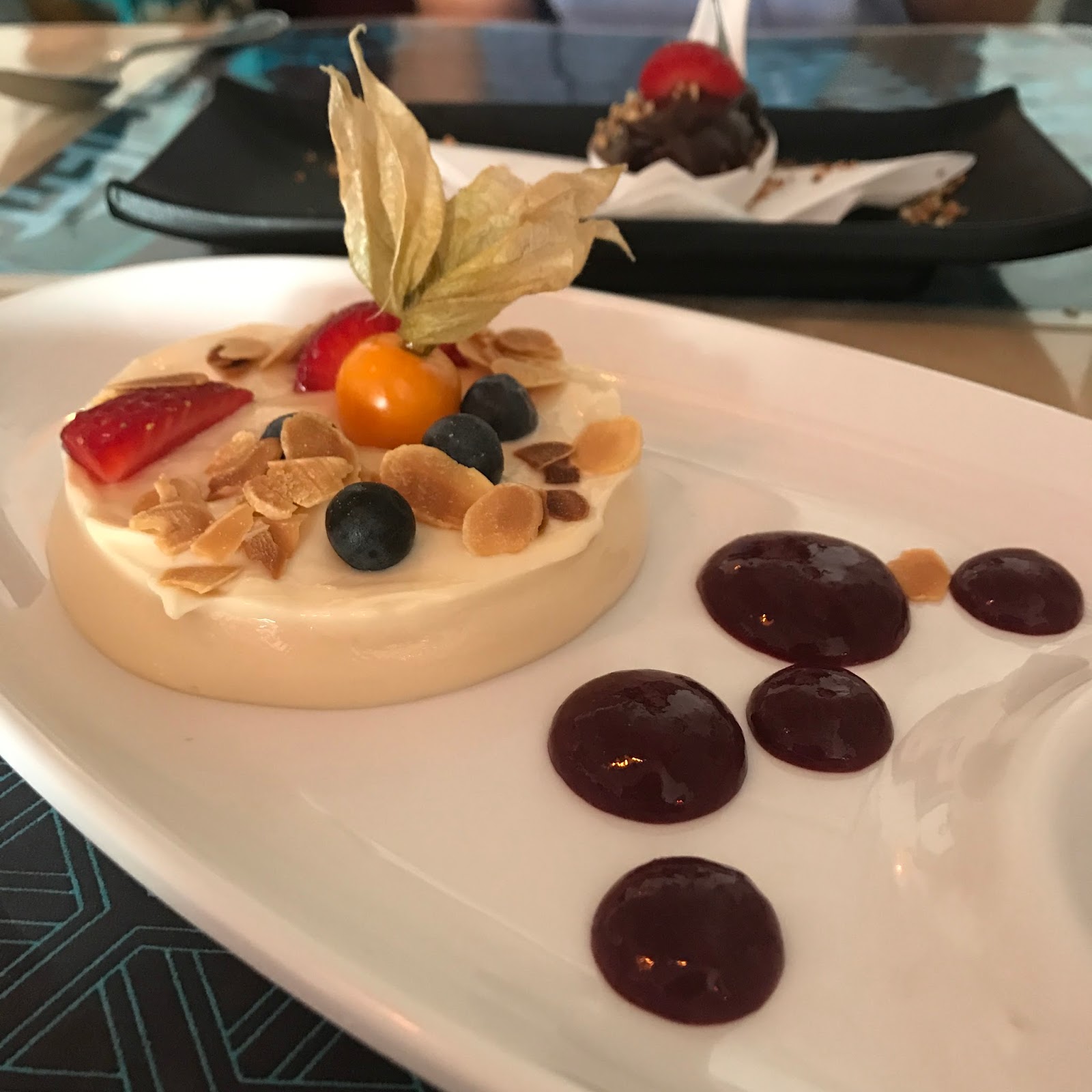Na hora da sobremesa fomos com outro clássico, a Santa Thereza (creme de iogurte, redução de frutas vermelhas, blueberry e macadâmia – R$23)