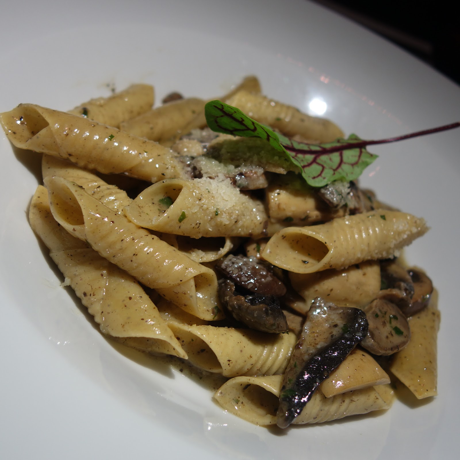 Minha amiga pediu o Garganelli, massa feita com trigo sarraceno funghi trifolati e tartufo negro.