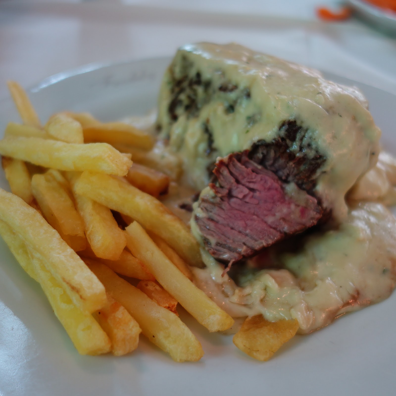 Pedi um clássico Filet Chateaubriand au Trois Fromage, um corte alto de filé mignon com queijo gorgonzola, parmesão e brie gratinado. Fiquei surpresa com o ponto perfeito do corte, por ser muito alto na maioria das vezes que eu peço o interior vem mal passado, algumas vezes quase cru, mas no Freddy estava perfeito, no ponto correto de ponta a ponta. O molho de queijos é suave e zero enjoativo, combinou perfeitamente com as fritas sequinhas que acompanham o prato.