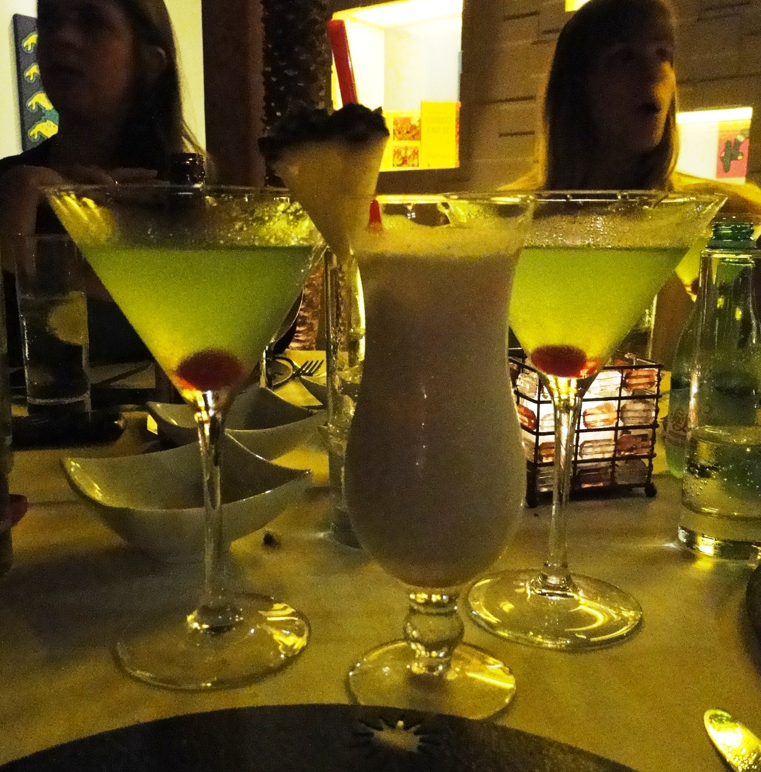 | Os preço dos drinks variam entre R$15 a R$30, os nossos escolhidos foram Apple Martini e Pina Colada. |