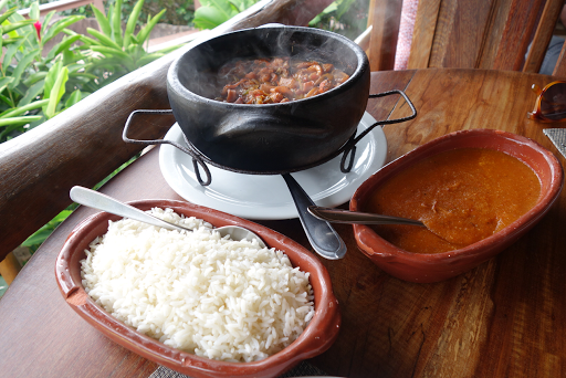 O Restaurante da Pedra do Sino serve pratos clássicos caiçaras, como frutos do mar fritos, peixes inteiros, caldeiradas e moquecas, tudo muito bem servido.