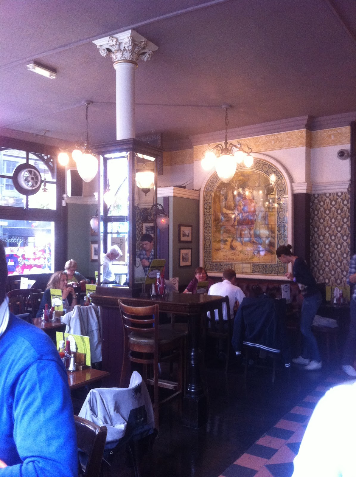 Ao entrar num pub, nada de esperar o garçom chegar e te levar até a mesa, é só procurar uma que esteja vazia ou um lugar no balcão e sentar. O cardápio já vai estar sobre a mesa ou escrito em alguma losa pelo pub, é só começar a escolher. Então, chega a hora em que os mais desavisados podem ter alguma dificuldade, pois o garçom não vai até a sua mesa, como nós estamos acostumados, é você quem vai até ele! Depois de decidir o pedido é só ir até o balcão, pedir e pagar, o garçom vai te perguntar aonde você está sentado e pronto, é só voltar para a mesa e aguardar. Em alguns minutinhos sua comida chega prontinha e caso você queira mais alguma coisa, dessa vez não precisa ir até o balcão, o garçom vai te perguntar se está faltando algo e aí é só pedir e pagar para ele mesmo na hora. Simples não? Mas saber disso faz toda a diferença pra gente não ficar um tempão lá sentado esperando algo acontecer.