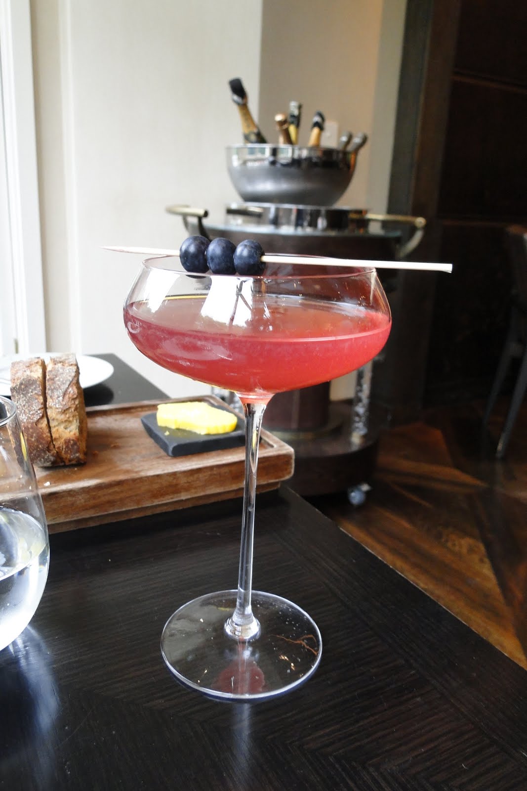 O Dinner by Heston Blumenthal fica em um dos hotéis mais famosos de Londres, o Mandarin Oriental, localizado no bairro de Knightsbridge, em frente ao Hyde Park e perto de lojas como a Harrods e a Harvey Nichols, ótima vizinhança! Dentro do hotel, o restaurante fica meio escondido, é melhor perguntar na recepção pra não ficar perdido. Ao chegar, fui recepcionada por uma simpática hostess que nos informou que o serviço estava atrasado e nos convidou a esperar no bar e olhar o cardápio. Aproveitei pra ver a enorme carta de drinks do bar do hotel, tão enorme que antes de eu terminar de ver e escolher algo para beber a mesa já estava pronta.