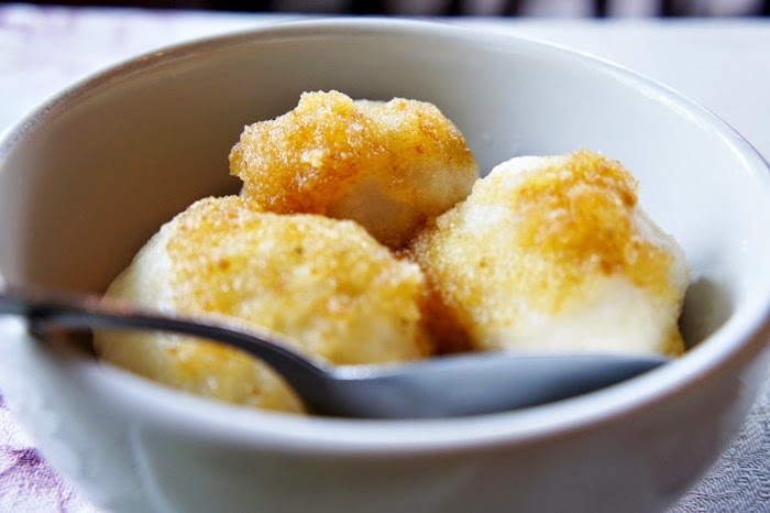 Pra começar chega a mesa uma porção de pães de batata quentinhos acompanhados da sopa – que segundo a minha mãe foi uma das mais gostosas que ela já tomou!