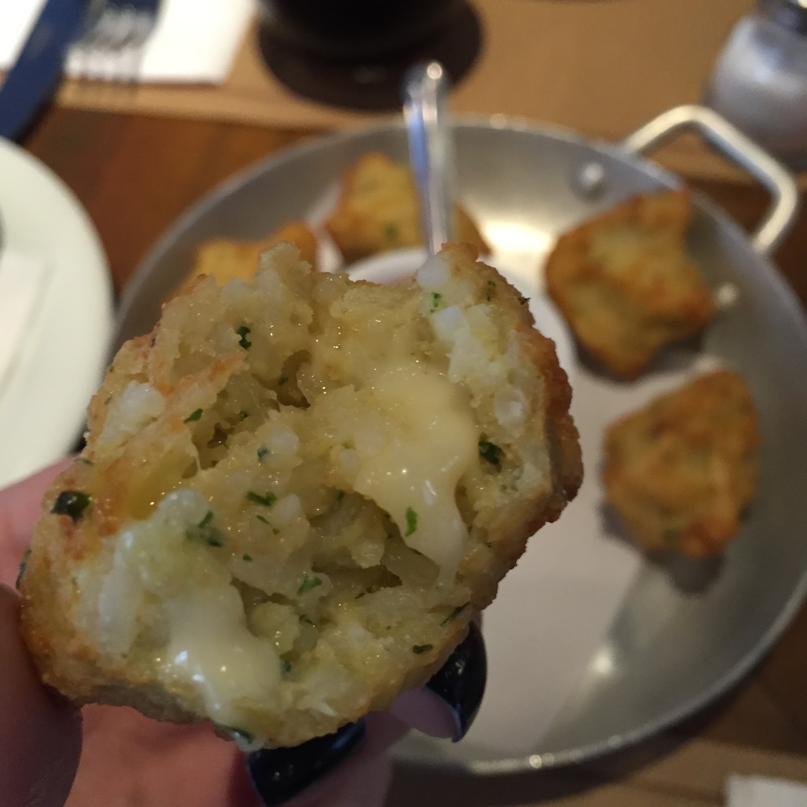 As opções de entradas eram tão gostosas que pedimos logo três, o Croquete de Costela, o Bolinho de Arroz Recheado com Queijo Fontina e a surpreendente Berinjela do Terraço, assada e recheada com a própria polpa transformada em um saboroso creme e gratinada ao forno.