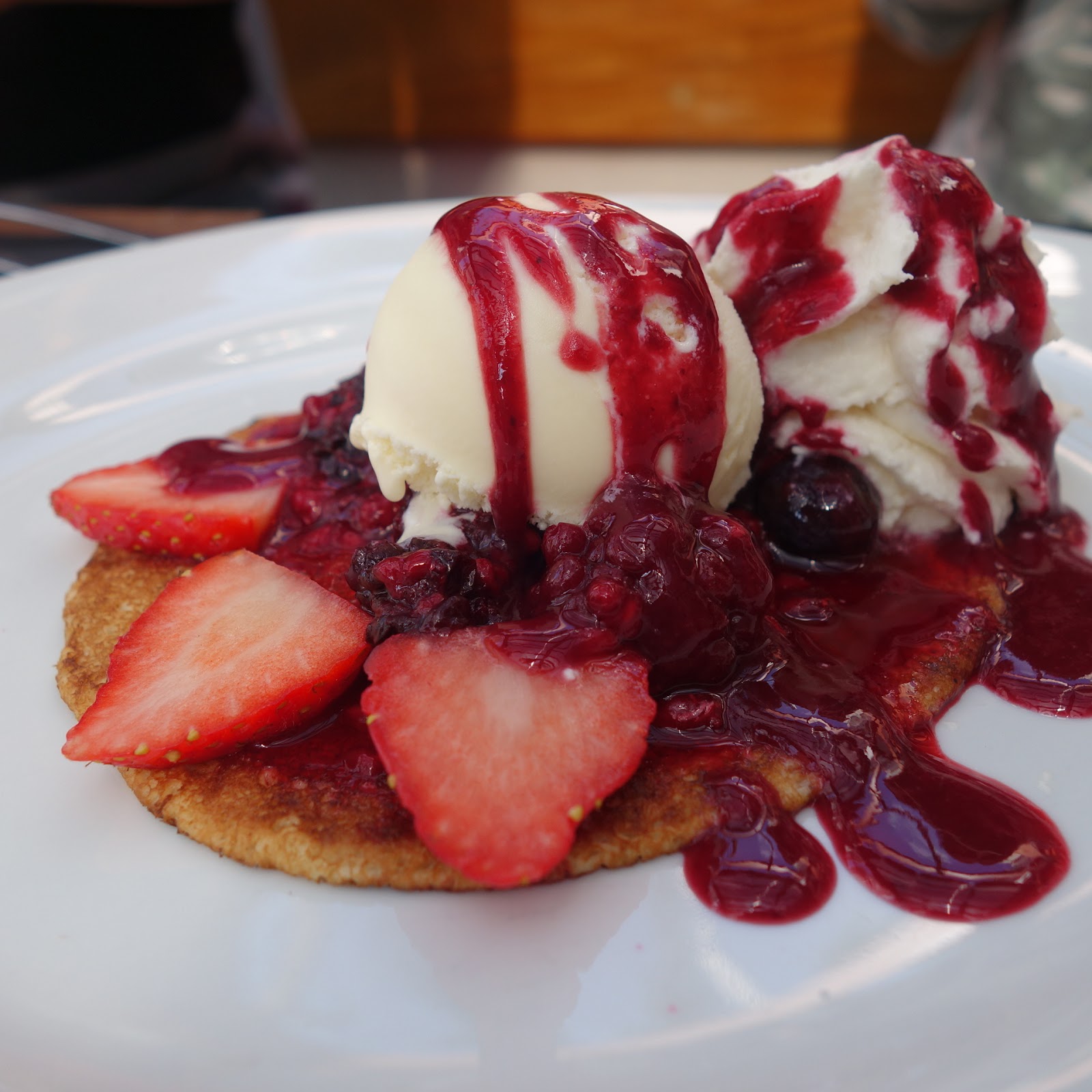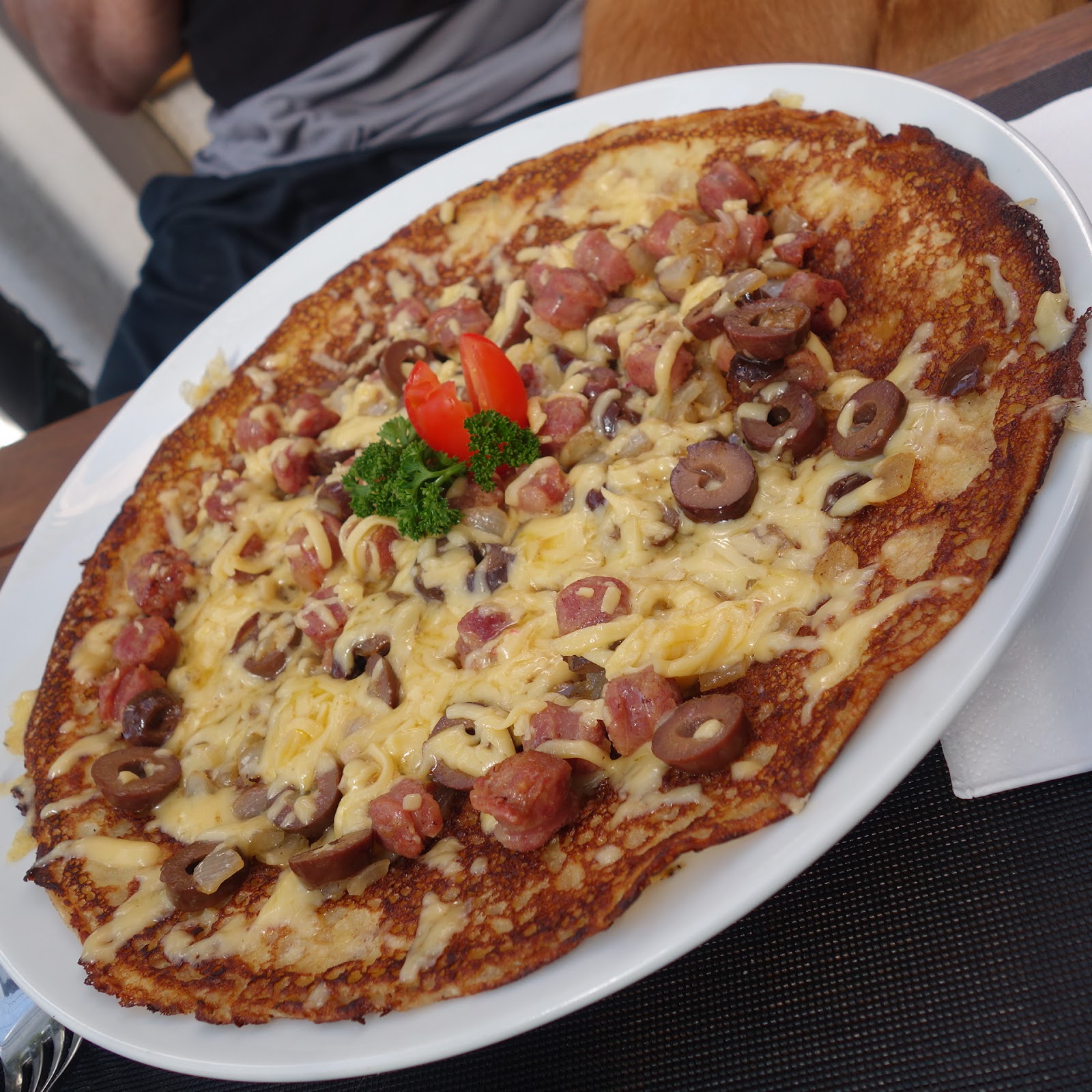 Durante a semana a casa serve um ótimo menu por apenas R$31 incluindo uma mini sopa ou salada e uma das panquecas do dia de 32 cm ou R$38 com mais uma mini panqueca doce.