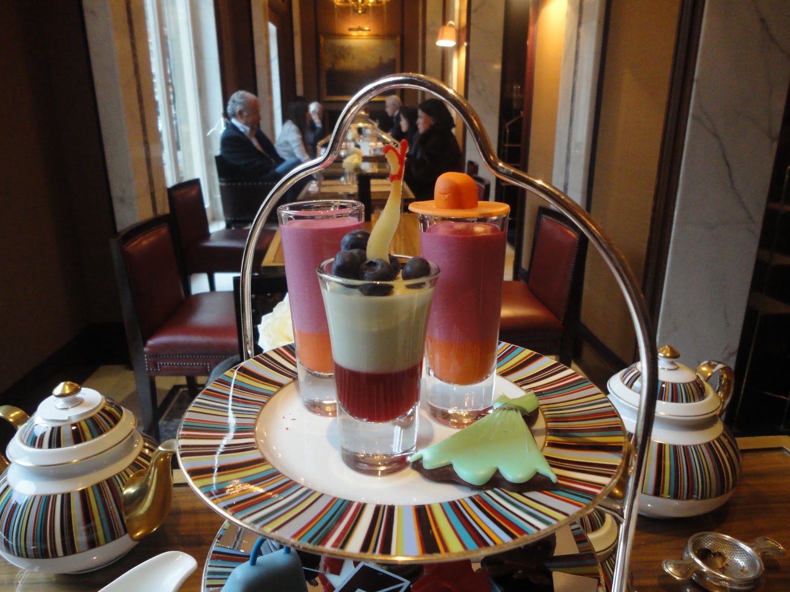 Última vez que fui para Londres pensei em experimentar uma das maiores tradições inglesas, o chá das cinco, comecei então a pesquisar os hotéis que ofereciam, o mais famoso é o do Ritz, mas a maioria dos hotéis cinco estrelas da cidade oferecem a sua versão, minha procura terminou quando eu descobri o Prêt-a-Portea do The Berkeley Hotel. O chá é servido no bar do hotel, o Caramel Room e foi desenvolvido pensando nos fashionistas, a cada temporada eles escolhem alguns dos itens de maior destaque na moda e reproduzem como deliciosos docinhos, muitooo fofo!! O serviço começa, claro, com a escolha do sabor do chá que você deseja, são inúmeras opções de folhas soltas e infusões herbais, provei três, pois estava em três pessoas, um era melhor que o outro, destaque para o Pear Caramel que era maravilhoso!