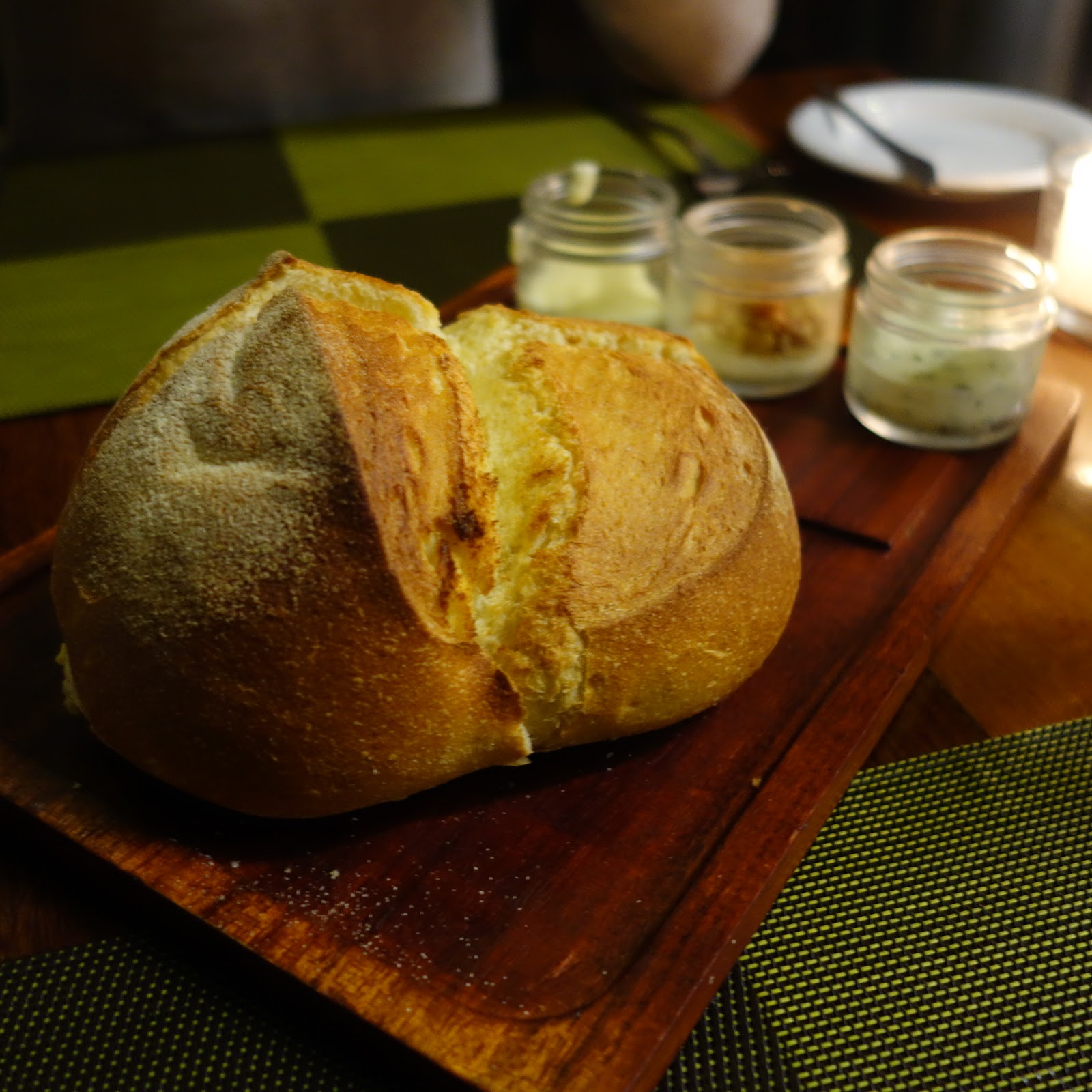 Começamos com o ótimo couvert da casa: pão quentinho preparado lá mesmo e pastinhas.