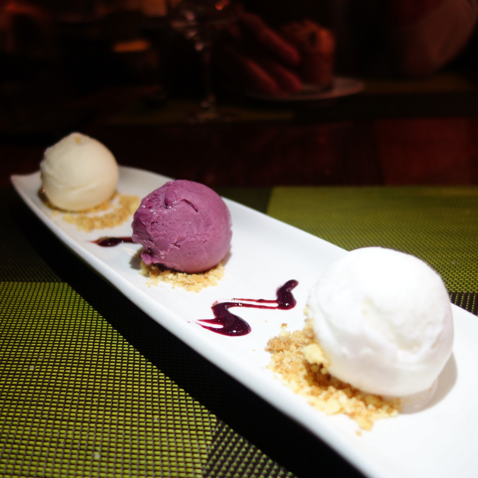 Na sobremesa mantive o clima brasileiro e escolhi o Trio de sorbets e coulis de frutas (R$22,00) com soberts de cupuaçu, jabuticaba e graviola.