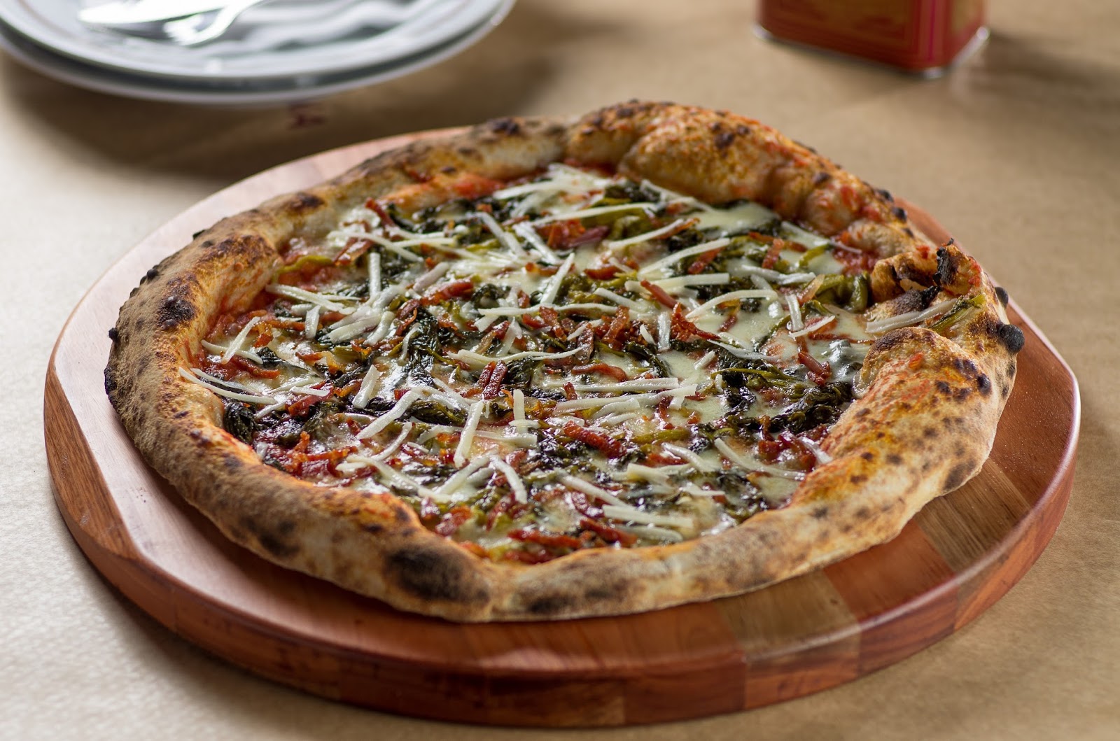 Entre as opções de ingredientes: Tyrol Speck, Presunto Cru, Bresaola, Queijo Fontina, Queijo Caprino, Grana Padano, Ricotta, Scarmorza Defumada, Mozzarella de Búfala, Molho de Tomate, Linguiça Toscana, Mortadella de Pistachio, Pancetta Italiana, Presunto Cozido Italiano, Spianata Picante, Abobrinha, Pimentão, Salsão, Alici, Atum, Creme Abóbora Japonesa, Aspargos, Alecrim, Radicchio, Beringela, Machê, Rúcula Selvagem, Semente de Papóla, Cebola Caramelizada, Pera, Funghi Porcini.