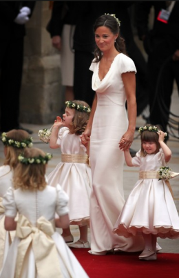 A noiva estava linda, mas quem ganhou os olhos da imprensa foi mesmo Pippa Middleton, irmã e dama de honra de Kate. Logo após o casamento, sites ingleses já estavam cheios de manchetes ressaltando sua boa forma física no belo vestido branco McQueen. No Twitter, não se falava em outra coisa e no Facebook, ela ganhou até página, ou melhor ela não, seu bumbum, a Pippa Middleton Ass Appreciation Society ganhou mais de 5 mil likes após o casamento. Se ela acabou ofuscando a noiva eu não sei, mas ao contrário do que pensamos o vestido branco não foi nenhuma gafe, na Inglaterra é costume as damas de honra usarem cores semelhantes a do vestido da noiva, acredita-se que ajuda a afastar os maus espíritos, inclusive, também foi assim no casamento da princesa Diana.