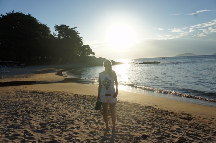 Infelizmente, para mim as férias acabaram 🙁 mas elas continuam por aqui com os looks do dia e também com as dicas de Ilhabela que estão por vir!! E hoje tem uma produção, bem simples, que eu escolhi para passar o fim de tarde na praia e ver o por do sol, o shorts jeans branco combinado com a regata, também branca, estampada. Estou amando esses modelos de regata mais cavados, eles ficam ótimos usados com tops diferentes, como esse que eu usei da Topshop, é legal que é uma maneira de usar os tops ou bralets de uma maneira que não mostre muita pele! Vou usar e abusar nesse verão!