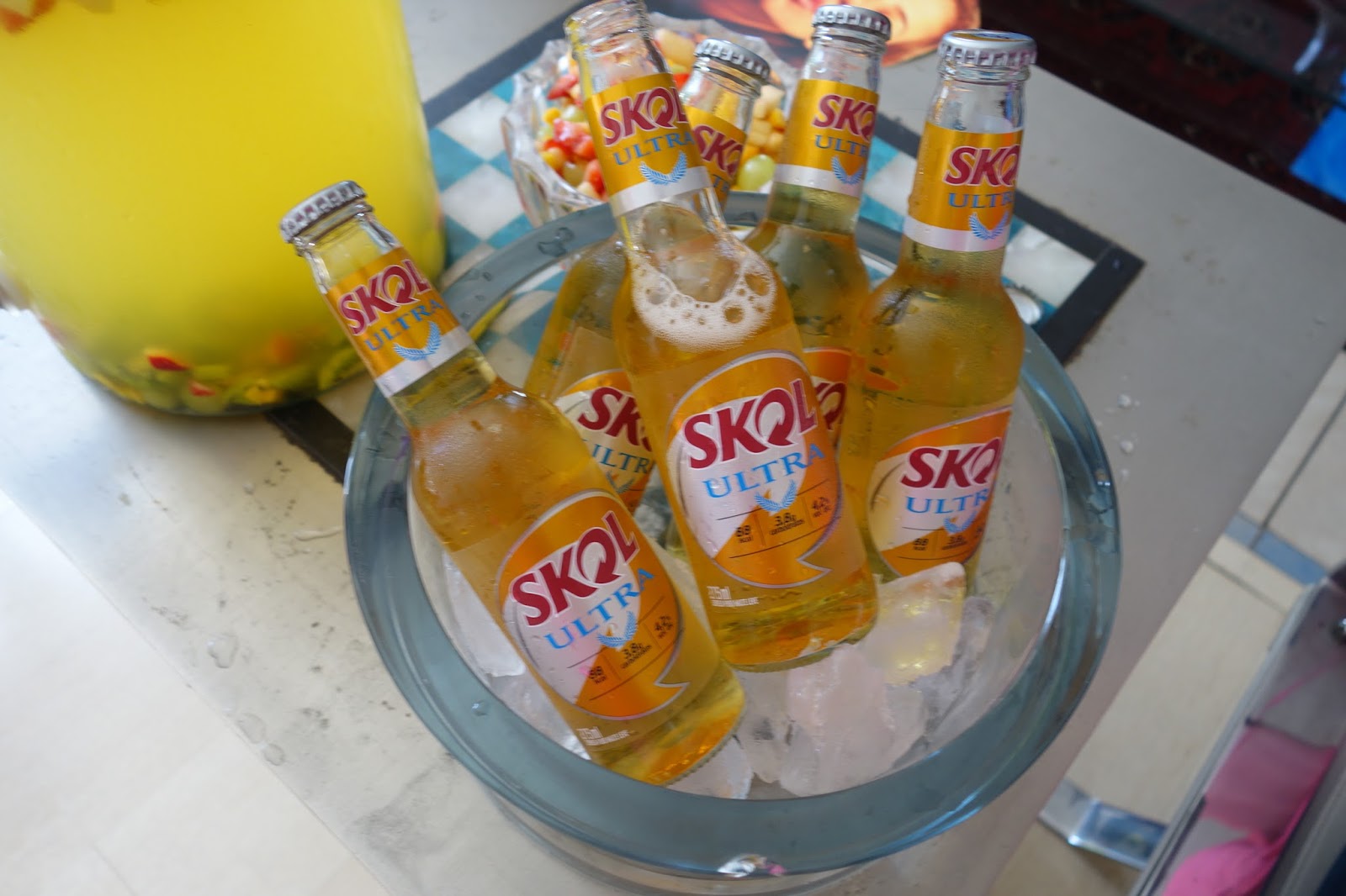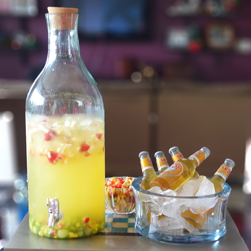 Para beber optamos por um drink fácil que dava pra fazer de uma vez só, o Clericot! E pra quem não curte vinho teve Skol Ultra, aquela que só tem 88kcal!