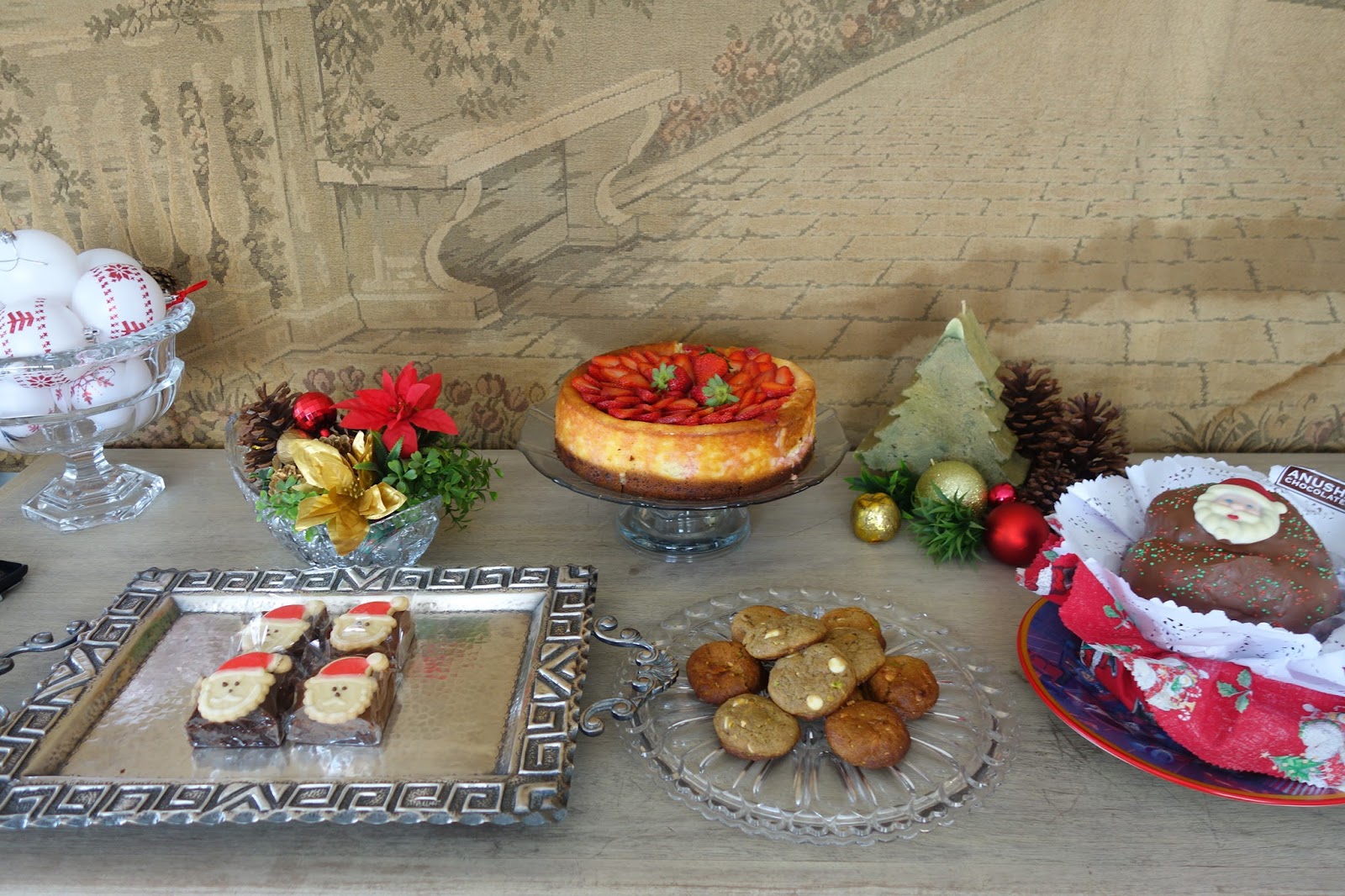 E no aparador coloquei os doces: brownies da Adoro Brownies, cheesecake maravilhoso do Coco Bambu (eles vendem inteiro no restaurante), chocotone lindo da Anusha Chocolates e cookies de limão siciliano e pistache da Cook Cookies.