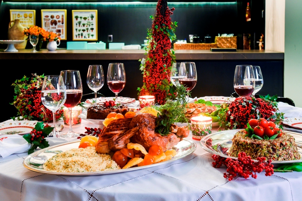 Como entrada, Vinagrete de vieiras frescas com pupunha, limão siciliano e Xerez e Salada de arroz selvagem com aveia, avelãs e castanhas portuguesas. Dentre os principais, Tender marinado na cachaça de abacaxi no próprio molho e Peru inteiro com laranja desidratada, maçã assada com canela, compota de caju e chutney de frutas. Para encerrar, opções como a Torta de amêndoas sem farinha e castanha de caju com coulis de amoras. As encomendas podem ser feitas até 15/12 (R$6.200-20 pessoas/R$9.300-30 pessoas).