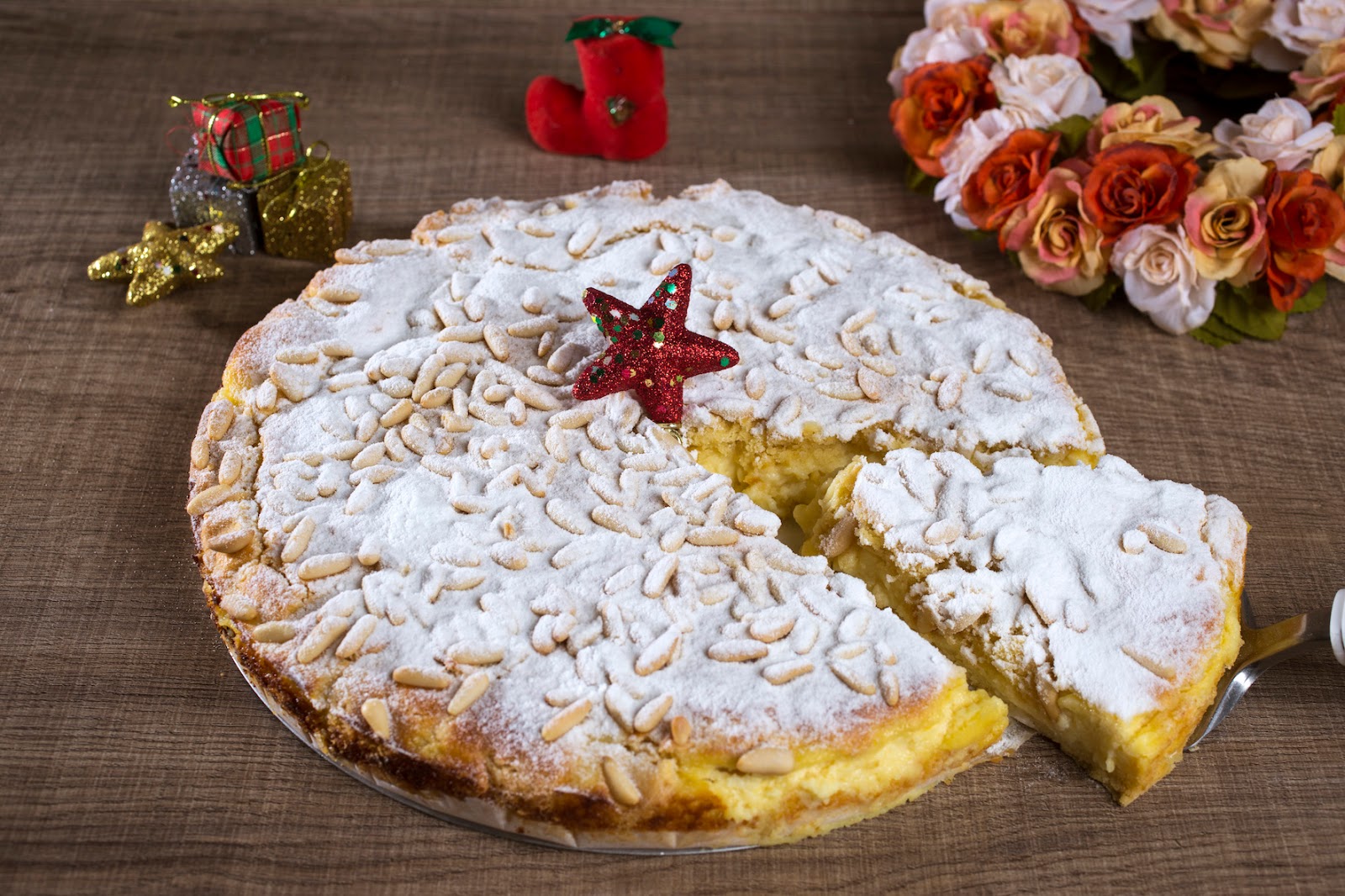 Pinolata (torta de creme com pinoli)Conhecido como Torta della Nonna, esse bolo é uma tradição em épocas de Natal e Ano Novo na Toscana.