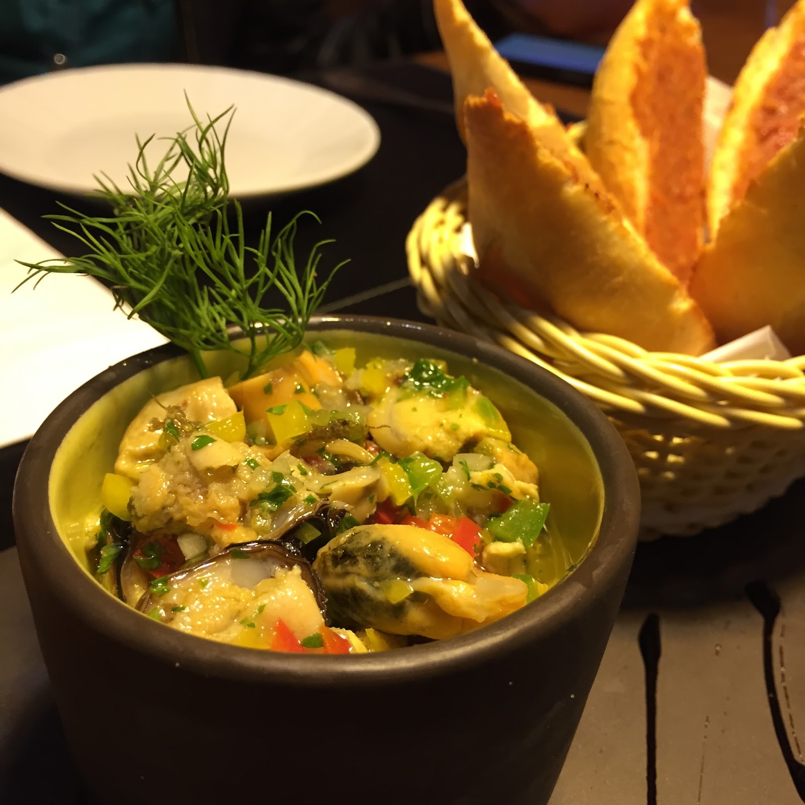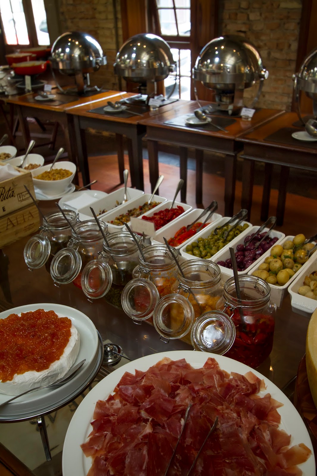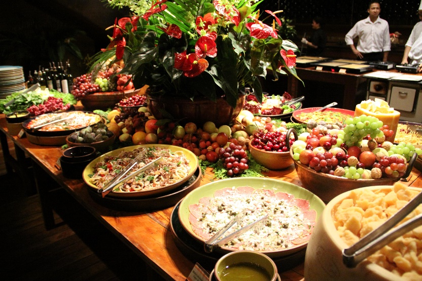 Antepastos: 11 tipos de antepastos entre eles: Homus, Coalhada seca, Babaganoush, Caponata de berinjela, Jamón Serrano, Brie aquecido com geléia de damasco, Gran Formaggio R.A.R. 12 meses de cura (tipo Grana Padano), entre outros.