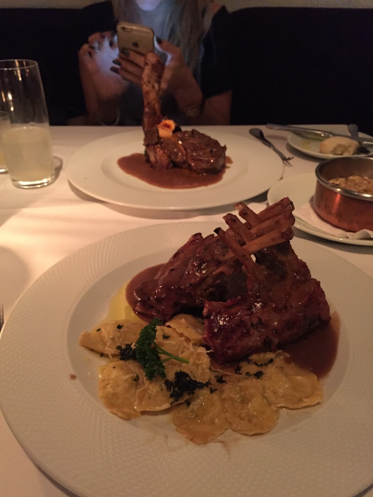 – Nhoque de zucca e ervas com filé mignon suíno grelhado, molho de especiarias e folhas de espinafre