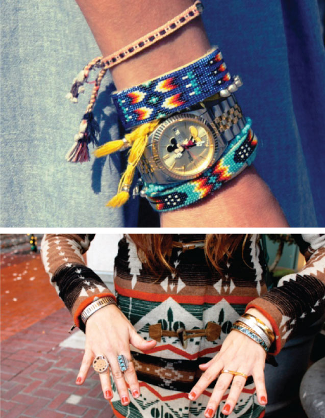 Nicole Richie é fã assumidíssima do estilo, a estilista sempre encorpora a estampa e outros elementos do estilo, como as franjas, em seus looks, sua paixão é tanta que os motivos navajos já serviram até de inspiração para roupas, sapatos e bijoux – que você confere abaixo – de sua marca House of Harlow 1960.