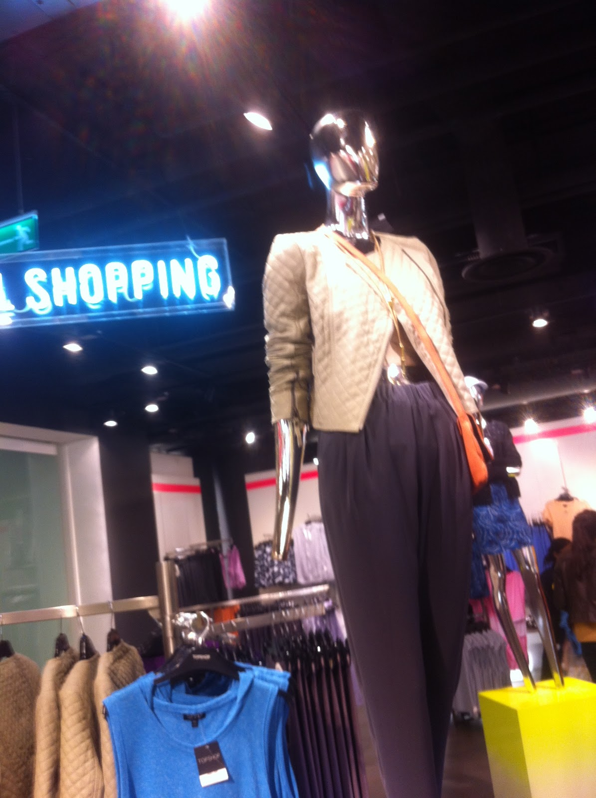 Foi só na terceira vez que me apaixonei pela marca, fui com calma, fora do horário de pico e com tempo de sobra para ver tudo que tinha lá dentro. Talvez, o maior segredo seja esse, ir fora do horário de pico, pois podem falar que a Europa está em crise, mas da 5 horas da tarde e parece que todas as londrinas saem do trabalho e vão para a Oxford Street, a rua fica lotada no estilo 25 de março e na Topshop não é diferente, você não consegue ver nada sem um monte de gente na sua frente puxando as roupas das araras! Por isso, meu conselho é, vá de manhã!! É bem mais vazio e sem tumulto.
