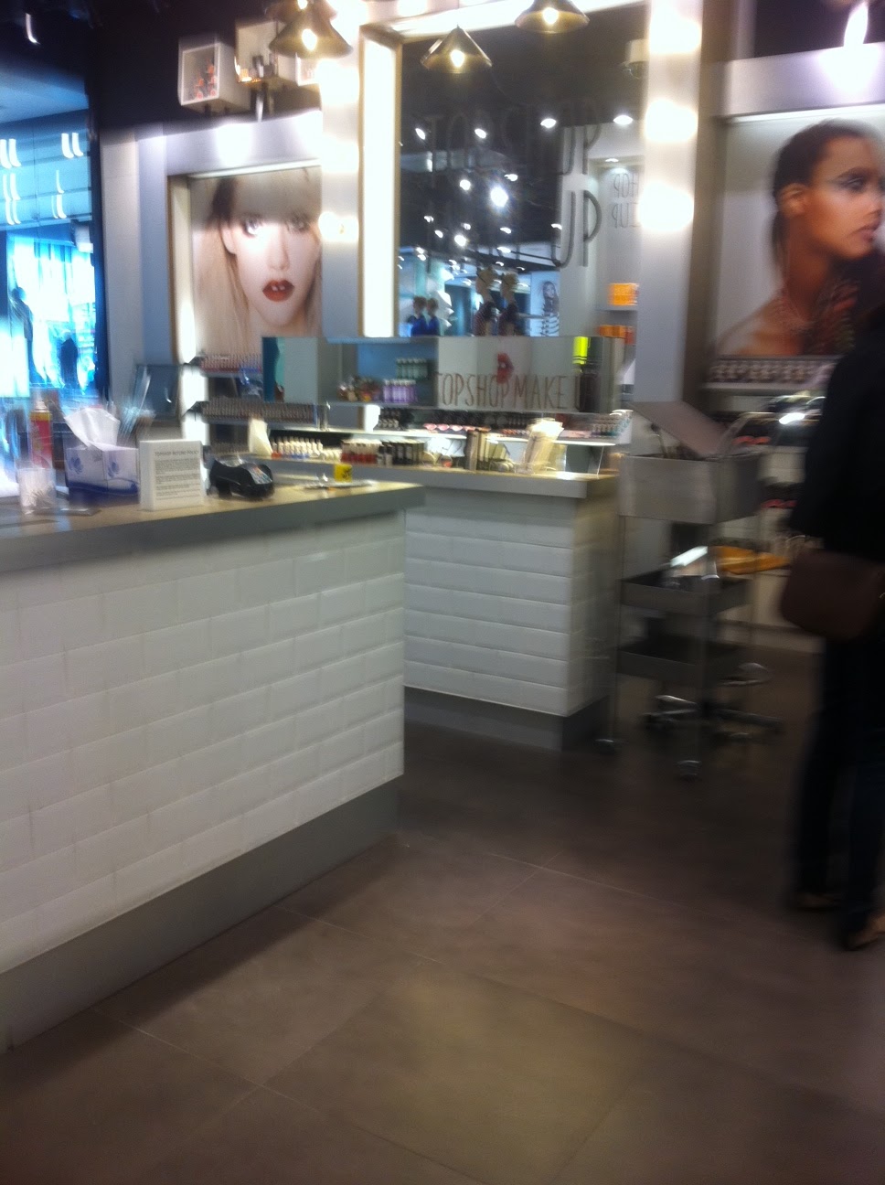 Logo ao entrar você percebe que a Topshop da Oxford Street não é apenas uma loja de roupas, no térreo fica a parte de acessórios, maquiagem e guloseimas, isso mesmo, comida! Em minha última visita a loja, em fevereiro desse ano, tinha um quiosque de cupcakes e um de frozen, mas eles variam de acordo com a época e as modinhas, isso sem falar do corner dedicado a balinhas digno de fazer os olhos de qualquer criança brilhar.
